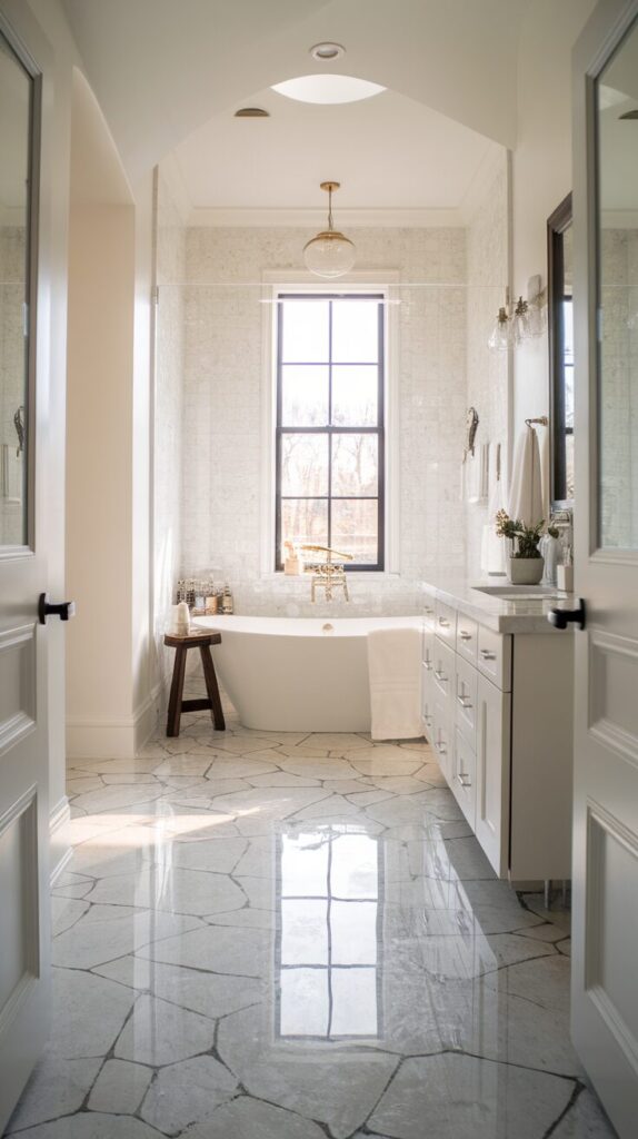 Flooring doesn’t exist in isolation. The color and texture of your bathroom floor influence how light reflects and how fixtures appear.