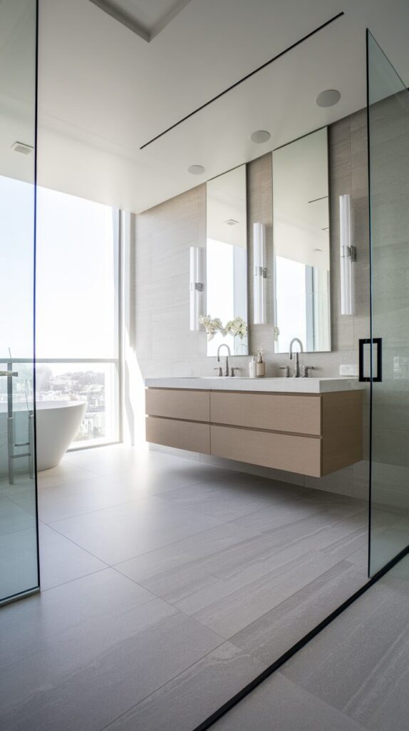 Large tiles also simplify cleaning, which feels like a small miracle in bathrooms.