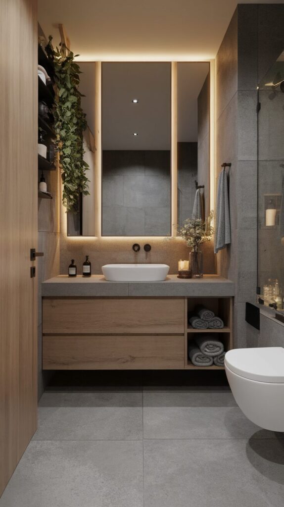 8. Concrete-Look Tile for a Modern Spa Vibe
