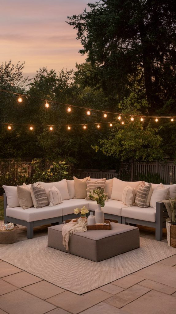 Start with a comfortable outdoor sofa or sectional that fits your space without cramping it. I personally love low-profile seating because it feels casual and inviting instead of stiff. Add deep cushions, weather-resistant fabric, and a layout that encourages conversation instead of everyone facing forward like a movie theater.