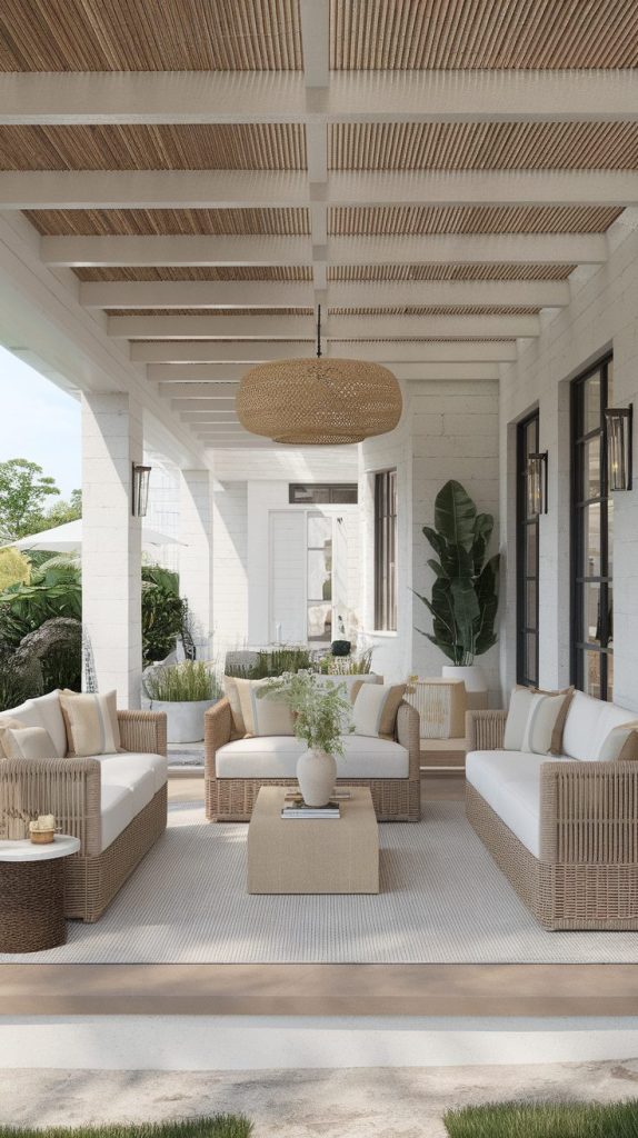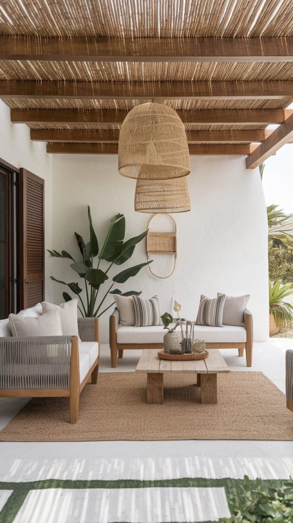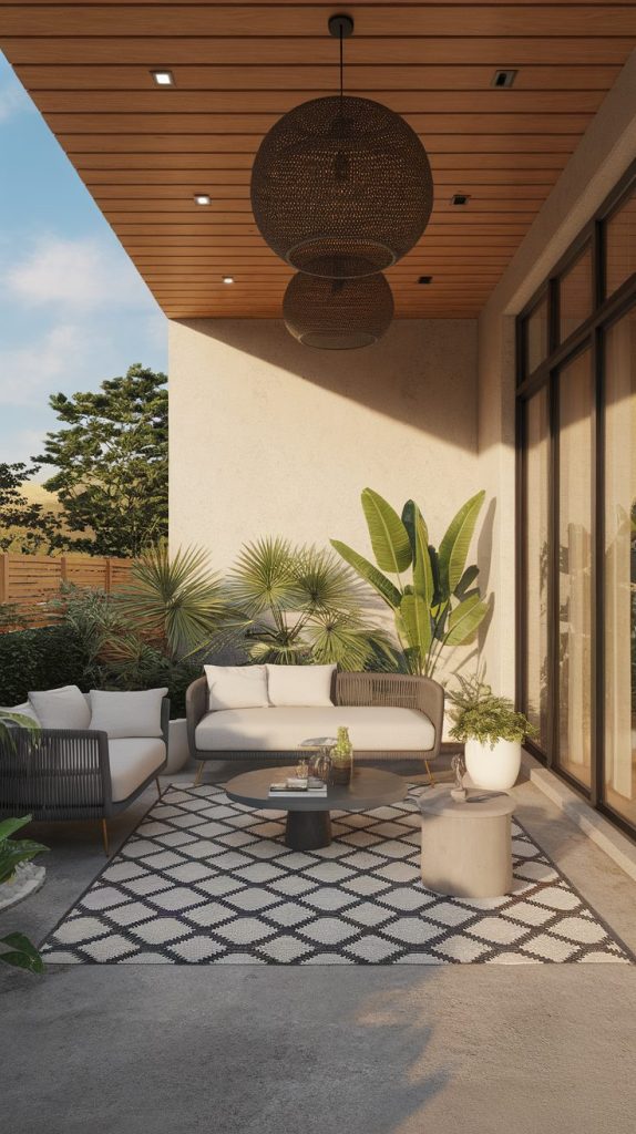 Woven materials soften hard surfaces. Rattan, wicker, or rope details add comfort and visual interest. These textures make patios feel relaxed instead of formal.