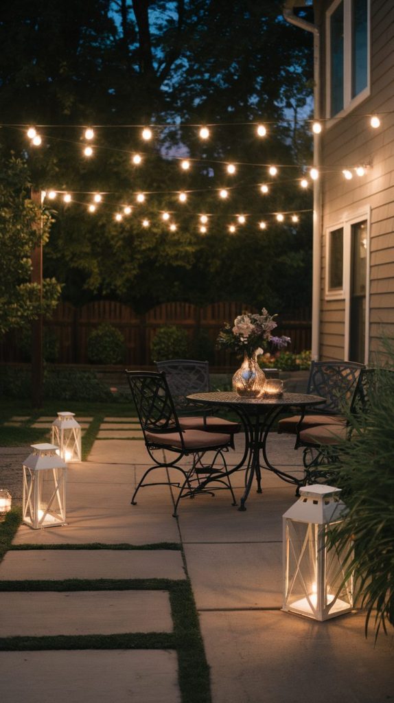 Lighting finishes the vibe better than any fancy furniture. Soft string lights or lanterns make the space feel warm and welcoming once the sun goes down. When the lighting feels right, you suddenly want to stay outside way longer than planned.