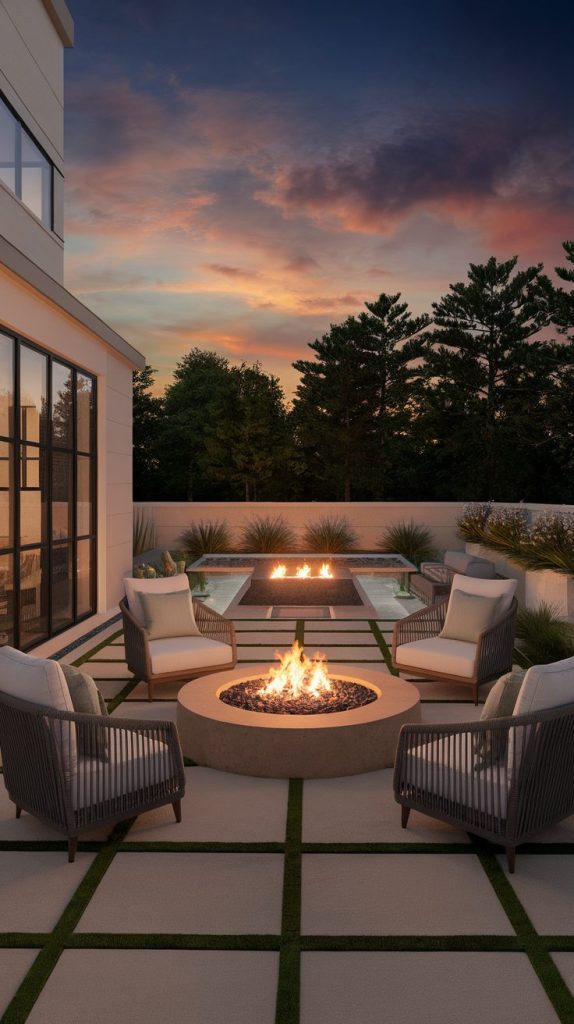 Seating around the fire pit should feel inviting. Chairs, benches, or built-in seating encourage conversation and relaxation. Cushions designed for outdoor use add comfort without stressing about sparks.