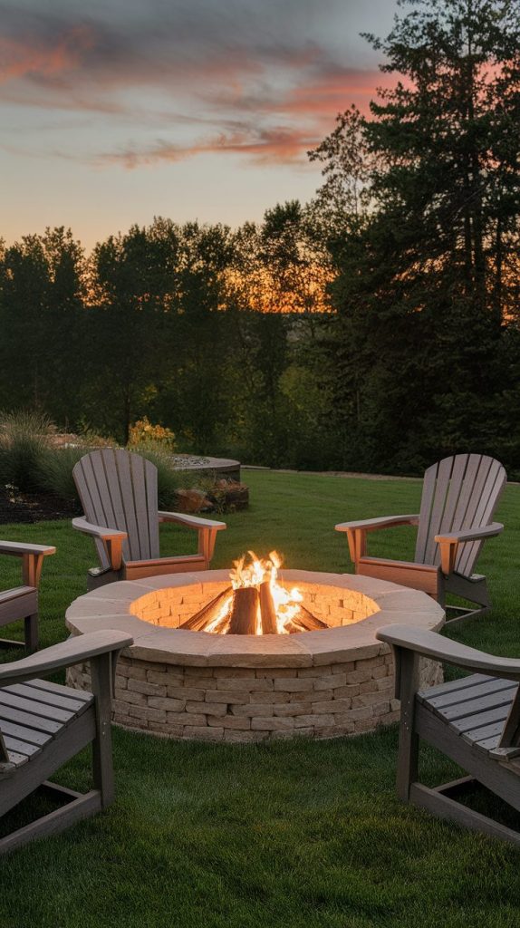 I always say you can’t go wrong with a classic stone fire pit because it fits almost any backyard without trying too hard. Natural stone brings that sturdy, grounded feel that makes people want to pull up a chair and stay awhile. If you like things that age well and still look good years later, this idea checks every box.