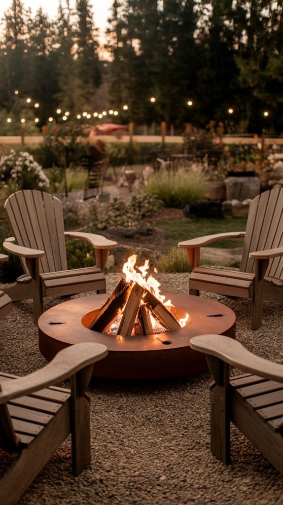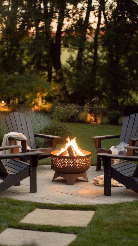 Metal pits work great if you like a casual, unfussy vibe. You can toss on some Adirondack chairs and call it a night. This setup focuses on comfort over perfection.