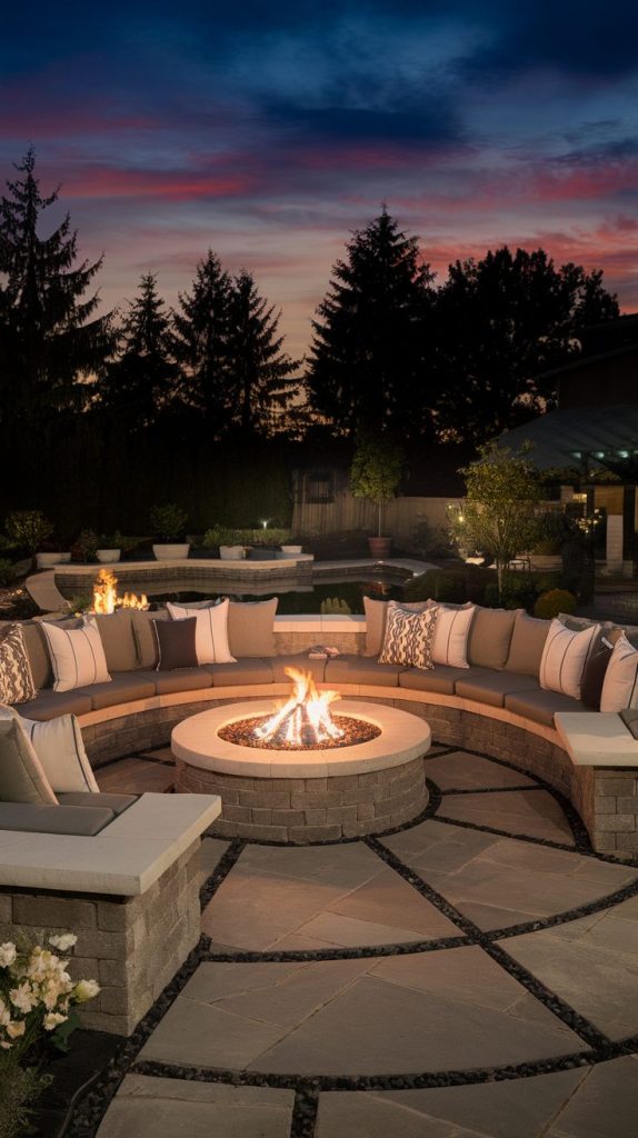You can match the seating material to the fire pit for a cohesive look. Stone benches, concrete ledges, or wooden surrounds all work well. Add cushions to boost comfort and style instantly.