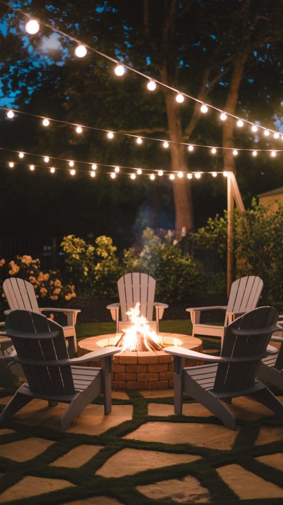 String lights plus a fire pit create instant magic. The soft overhead glow pairs perfectly with flickering flames. I always notice how this combo changes the mood immediately.