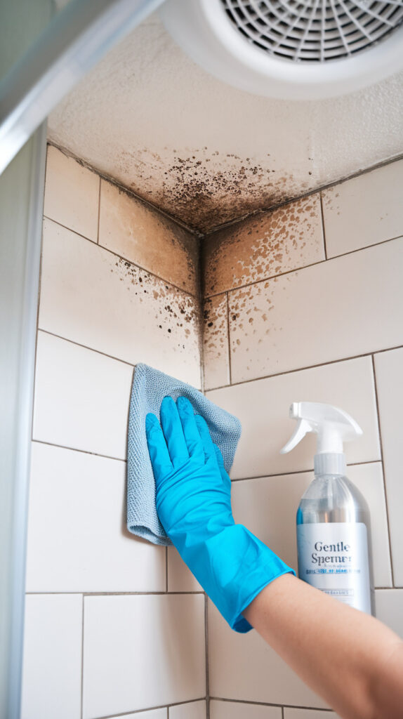 - Check behind the toilet and behind bathroom storage where airflow stays poor.