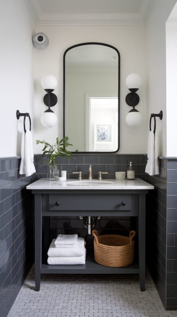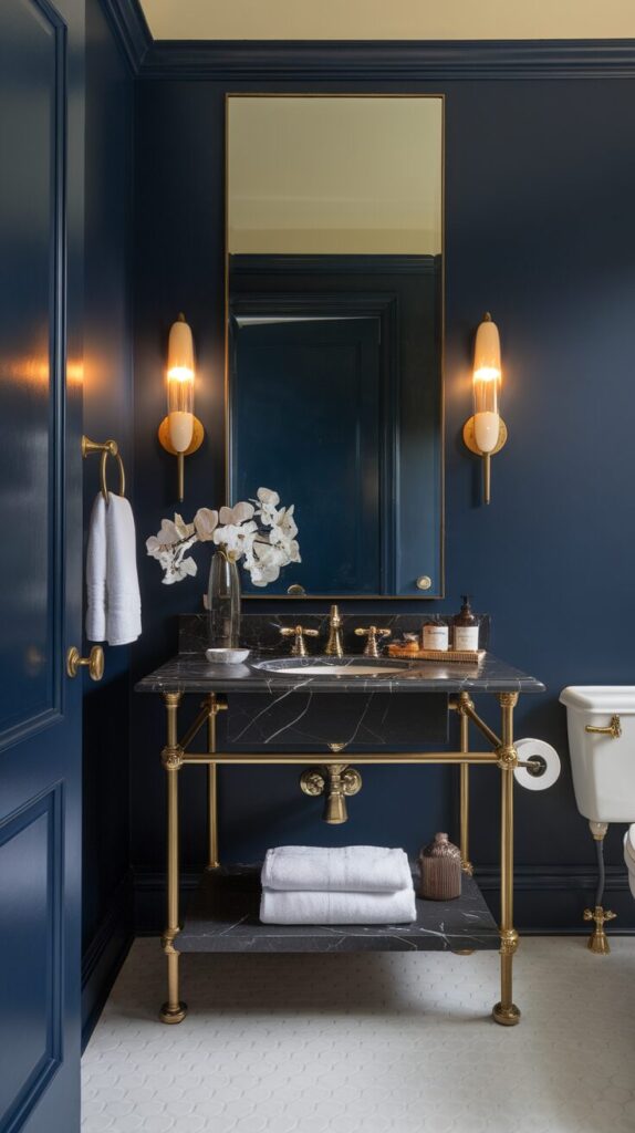 Don’t be afraid of dark shades—when used strategically, they bring depth and a modern edge. Add a large mirror or metallic fixtures, and you’ll amplify the boldness while keeping the vibe sophisticated.