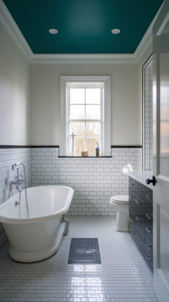 Flip your perspective—literally! Instead of focusing on the walls, paint your ceiling for a delightful surprise. This works especially well in small bathrooms where every detail counts.