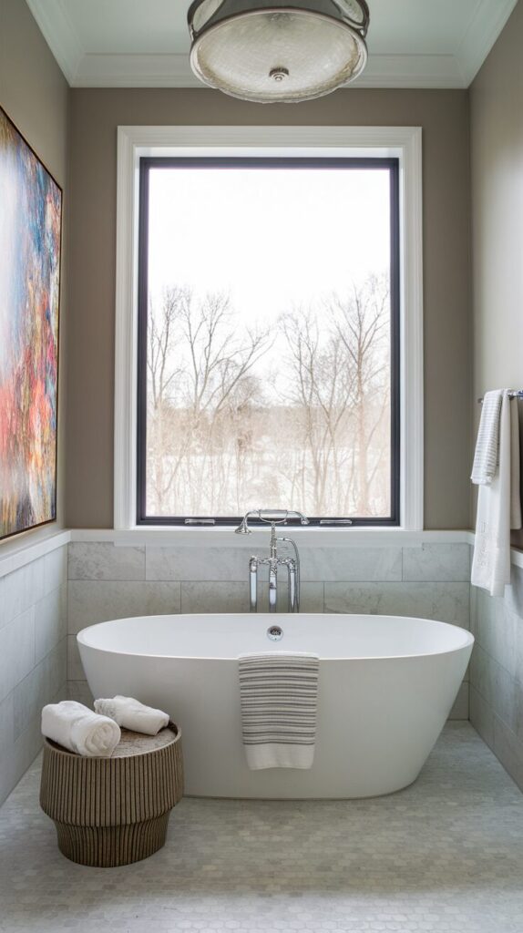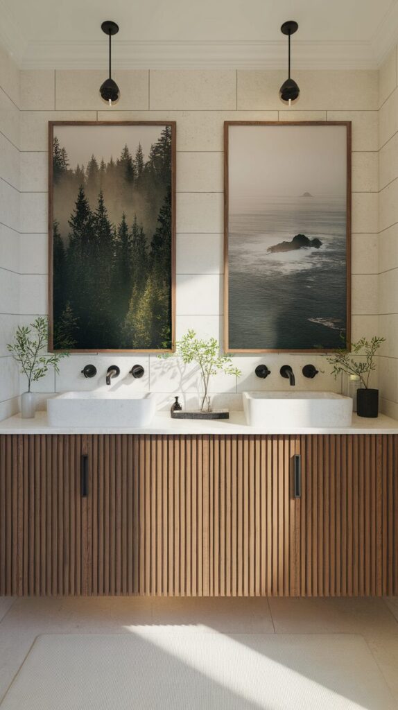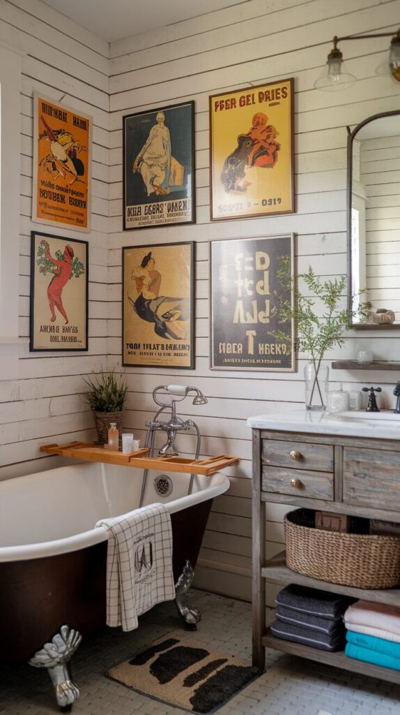 Hunt for unique finds at flea markets, antique shops, or even online print stores. They’ll give your bathroom a story and a style that feels far from cookie-cutter.