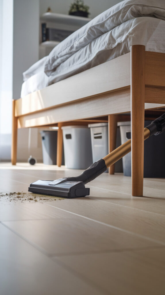 Vacuuming under the bed removes a major source of airborne dust that kicks up every time someone moves around. Less dust on the floor means less dust on furniture, bedding, and vents later.