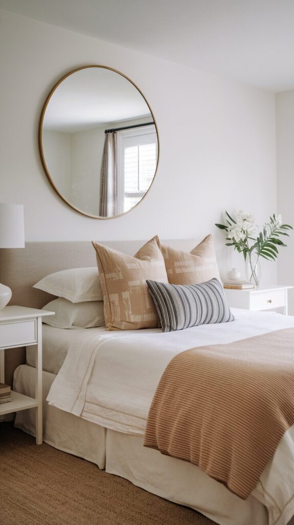 Art above beds feels risky sometimes. I swapped art for a mirror and loved the brightness. The space felt lighter immediately.