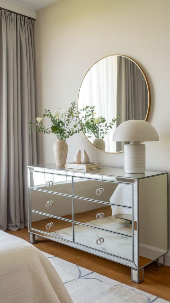 Furniture with built-in mirrors feels underrated. I added a mirrored drawer front and loved the subtle effect. The room brightened quietly.