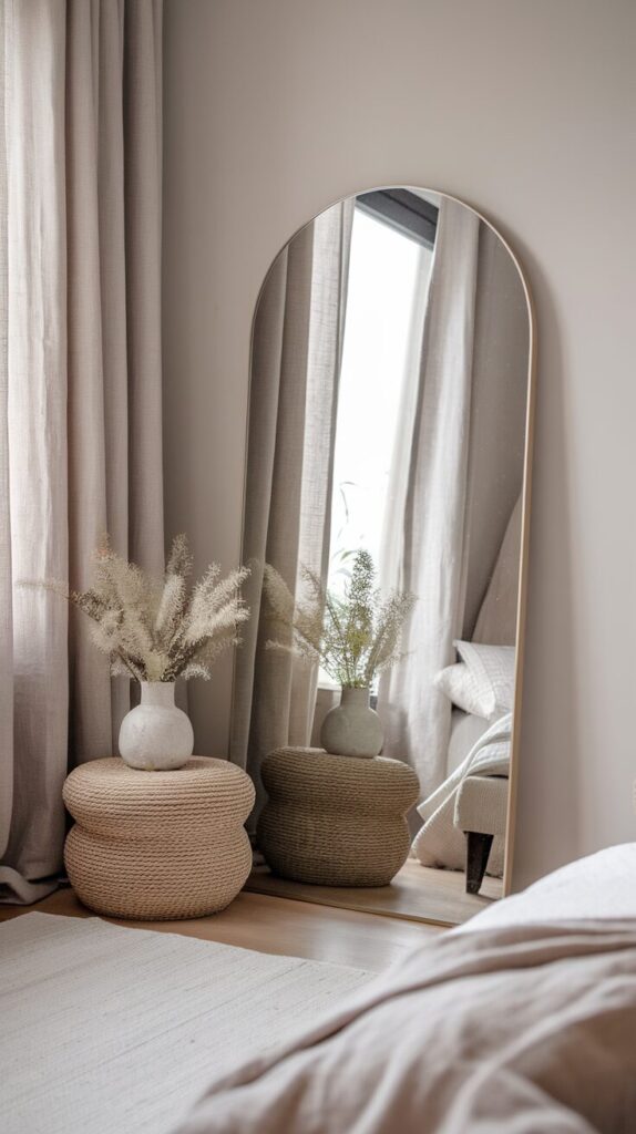 Straight lines dominate most bedrooms. I added an arched mirror and immediately noticed the room felt calmer. Curves soften everything without trying too hard.