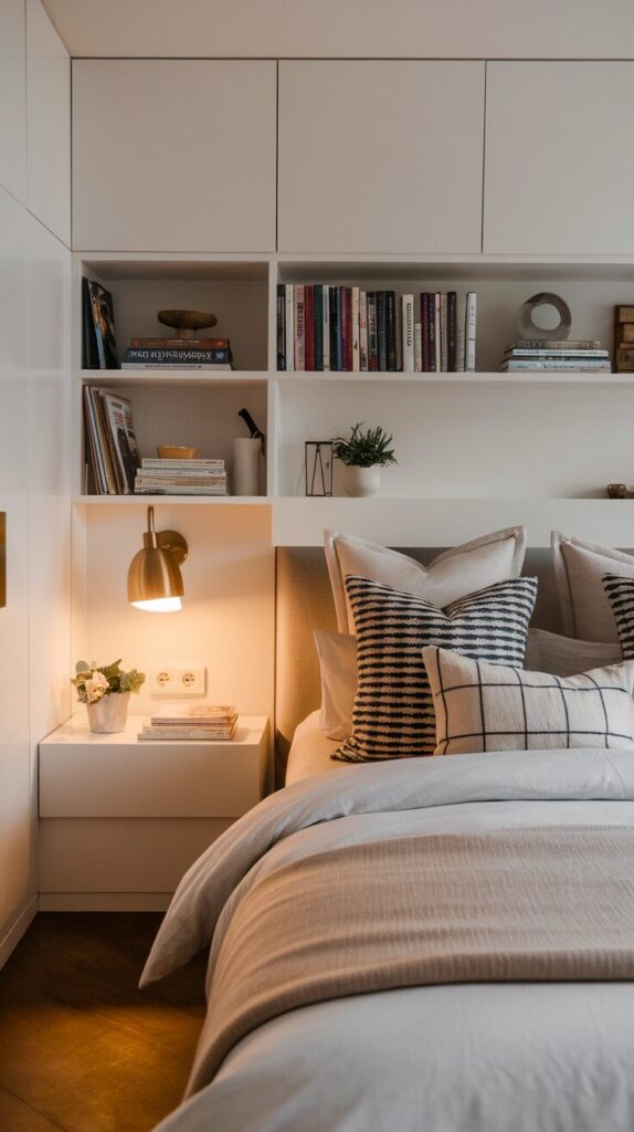 Shelving isn’t just about “where to put stuff.” It’s about maximizing space, reflecting your style, and making your bedroom a place you actually love to spend time in. From sleek floating shelves to rustic wood planks, there’s an idea here for every taste, budget, and bedroom size.