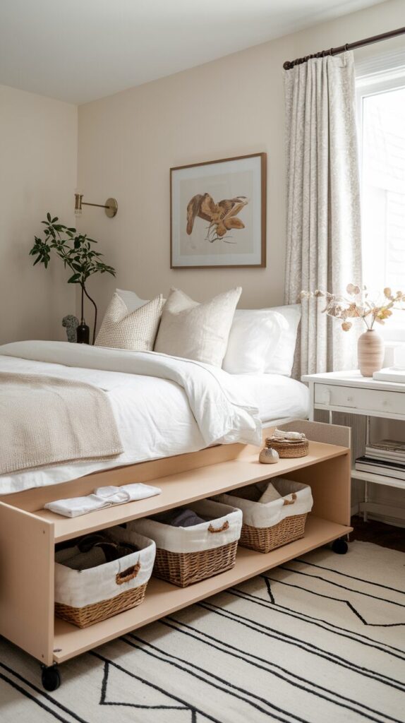 Why not try using that forgotten space under your bed? Rolling shelves make it super easy to store linens, shoes, or seasonal clothes out of sight but still accessible.