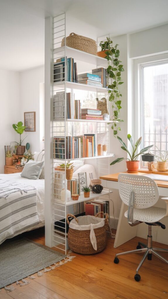 Fill them with books, baskets, or décor to personalize the space. Suddenly, your room feels bigger, more organized, and more defined.