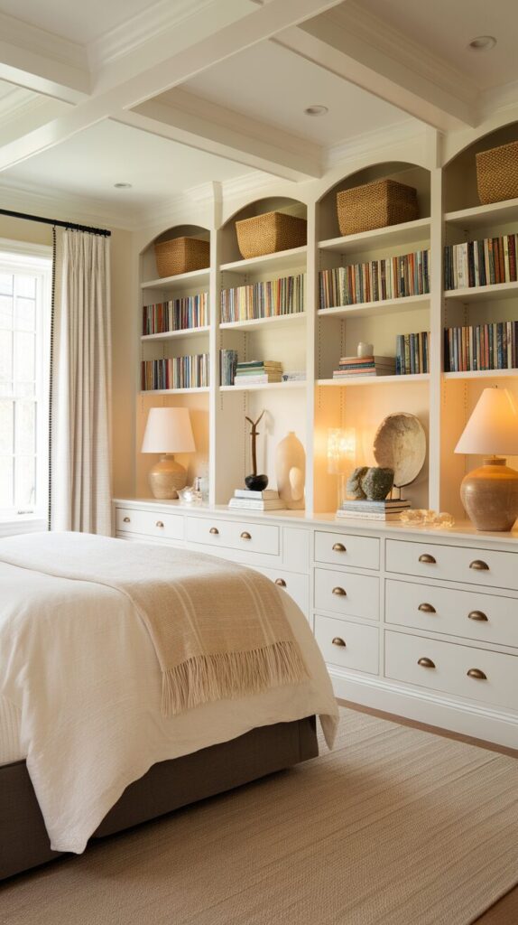 What makes built-ins so powerful is how they maximize every inch of vertical space. You can use the upper levels for décor pieces while keeping the lower areas practical for baskets, bins, or folded clothes. Suddenly, clutter disappears and your walls come alive.