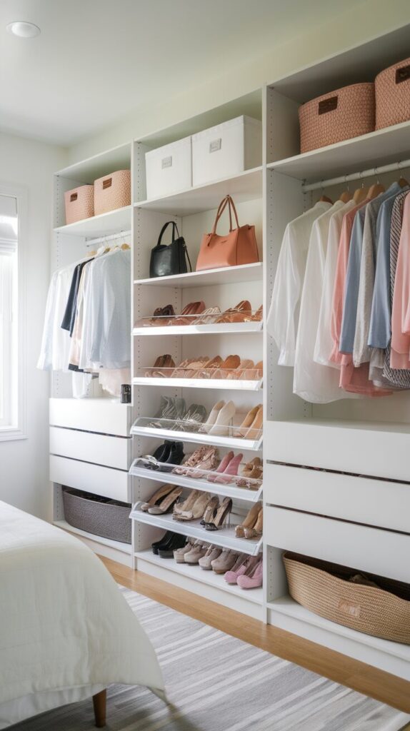 Think extra shelves for shoes, neat cubbies for bags, or a few added tiers for folded clothes. By lifting items off the floor and giving everything a “home,” you’ll instantly create a sense of order.