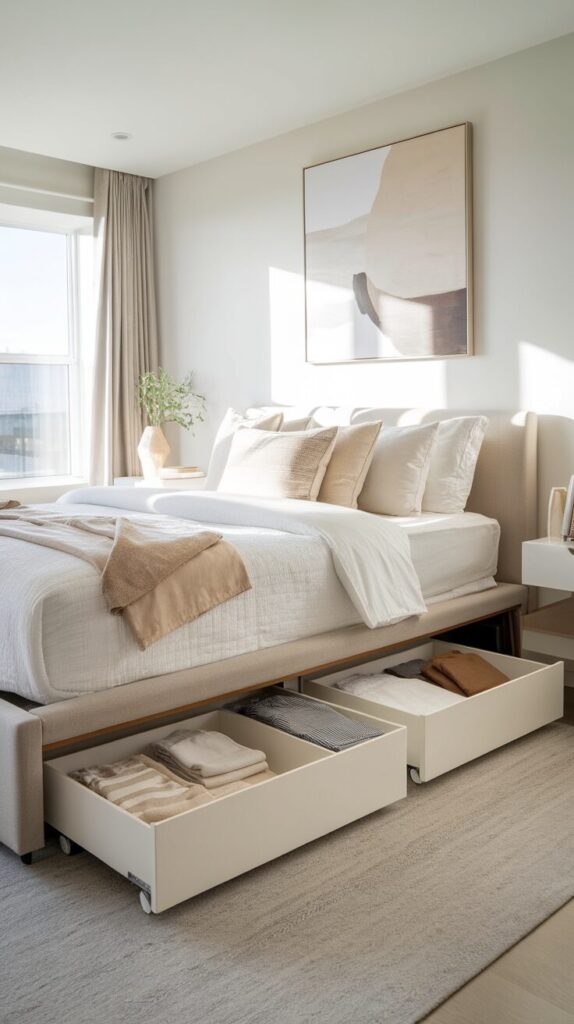 You gain serious storage without extra furniture. Everything stays hidden and organized.