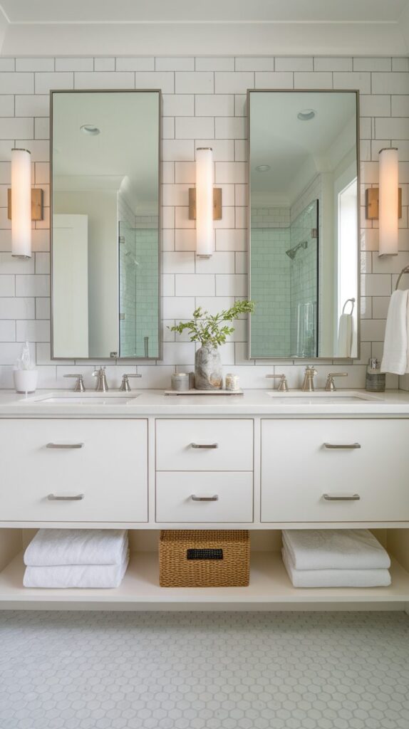 - Under-vanity LED strips for subtle glow
