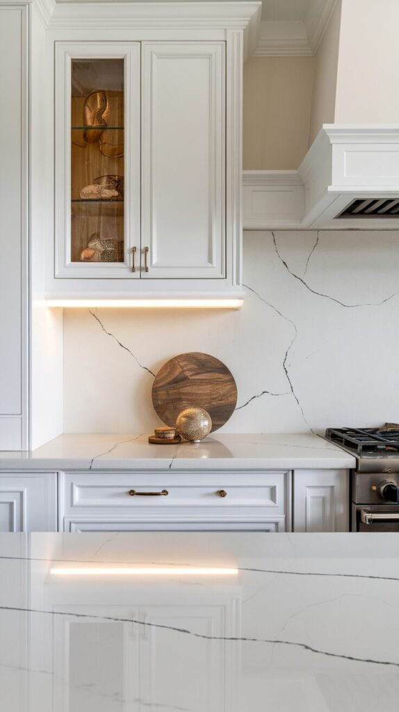 Avoid heavy veining in small kitchens. Subtle patterns keep things calm.