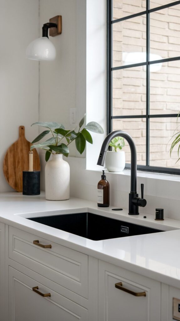 A black sink feels unexpected and practical. It hides stains and adds edge. I love how it turns a utility item into décor.