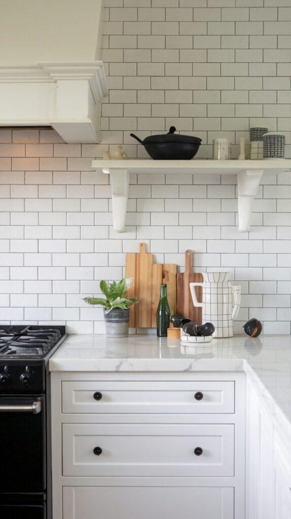 Subway tile never quits, but black grout gives it edge. This combo looks graphic, clean, and surprisingly forgiving. I love how it adds structure without overwhelming the room. It works in modern and classic kitchens alike.