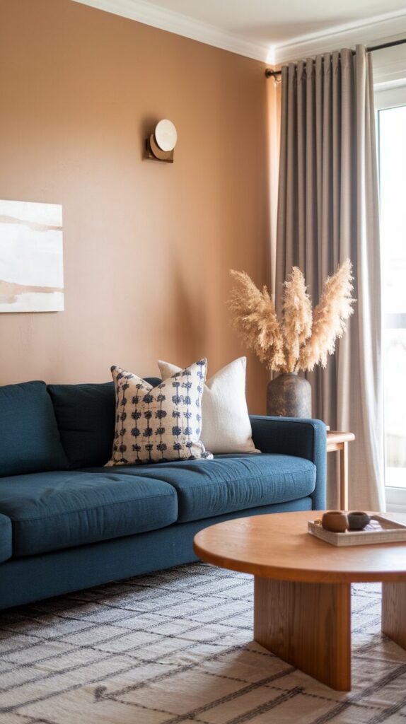 I once thought blue sofas demanded white walls or nothing at all. That belief died fast after I painted one living room a warm beige and watched the space instantly relax.