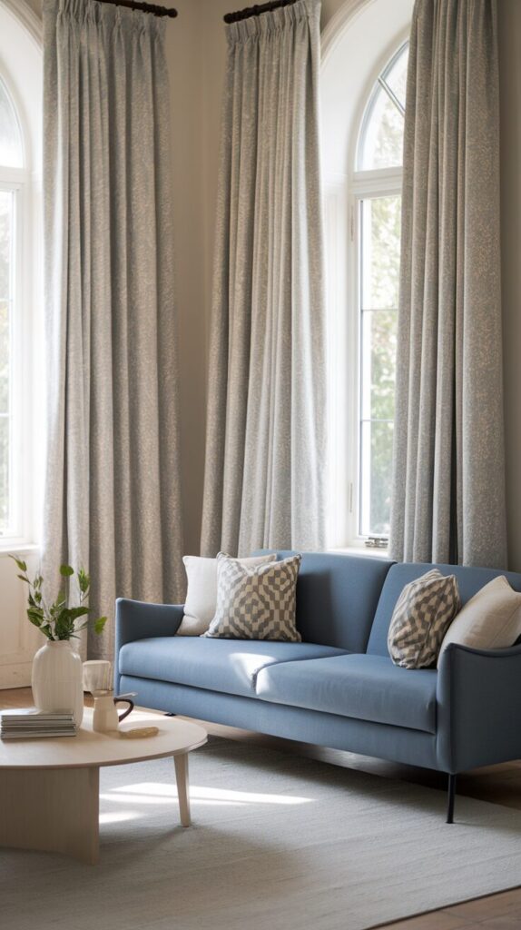 Heavy curtains overwhelmed my blue sofa once. Switching to light fabric fixed everything. The room finally flowed.
