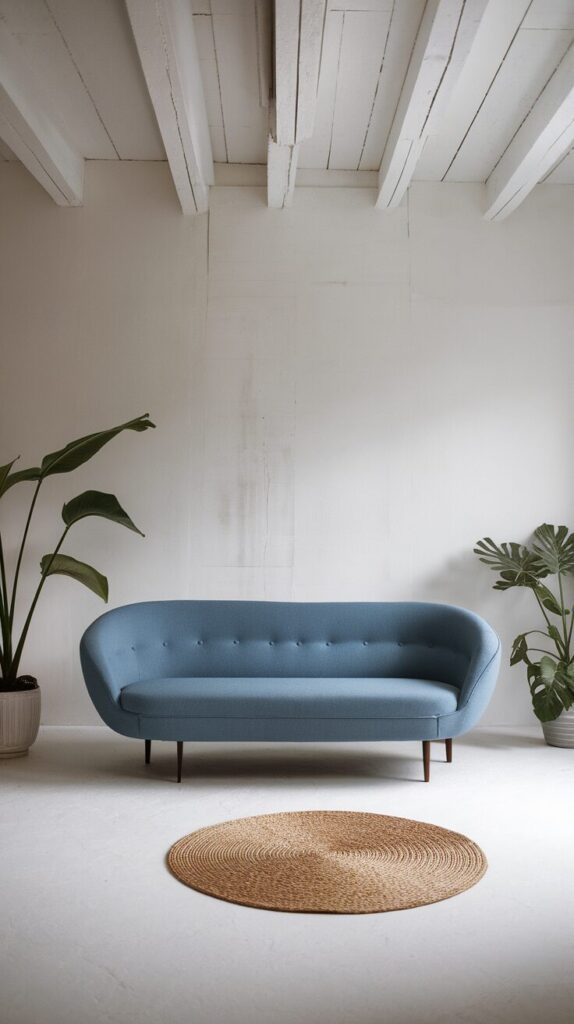 People also overcrowd the room because they fear emptiness. Too many side tables, baskets, plants, and decorative objects suffocate the visual impact of a bold sofa. Leave breathing room so the blue can shine without competition.