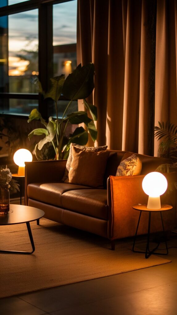 Lighting changes everything. I always choose warm bulbs near brown sofas. The color looks richer and more inviting.