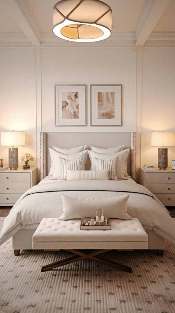 This is one of those things that feels boring until you see it done right. A neutral bedroom doesn’t have to look plain or lifeless. It can look rich, layered, and luxurious if you mix textures and tones properly.