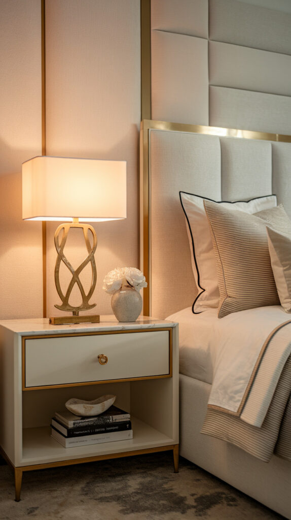 Also, don’t clutter them. A classy nightstand setup looks curated, not chaotic. A lamp, a book, and one decorative piece is usually enough.