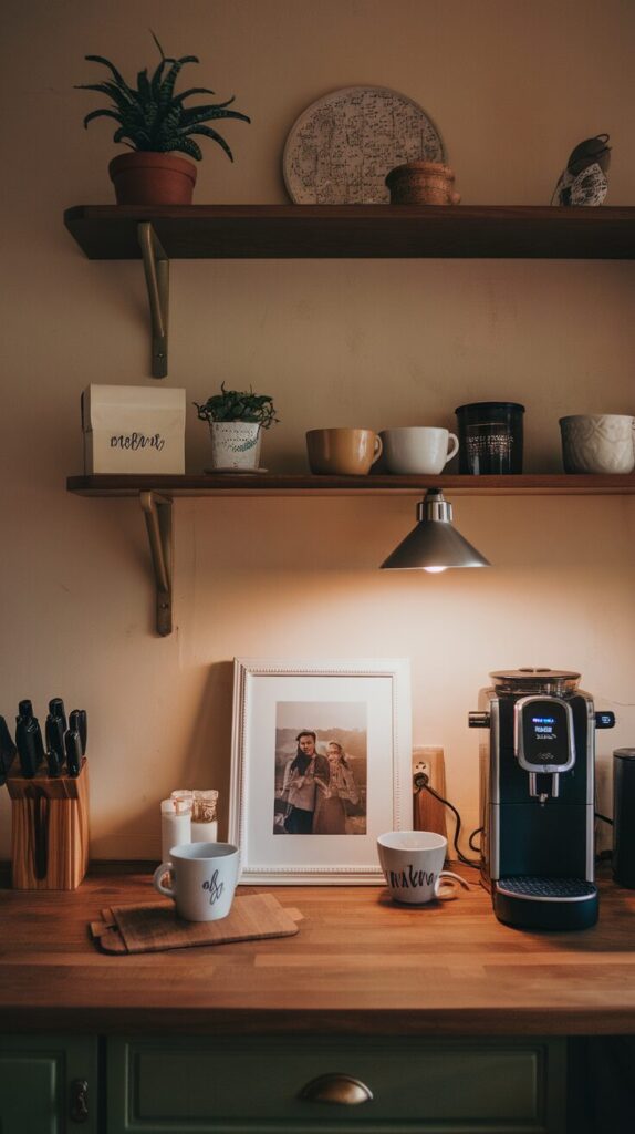 Personal touches make your coffee bar feel like yours. Photos, quotes, or small art pieces add meaning. I like setups that tell a story.