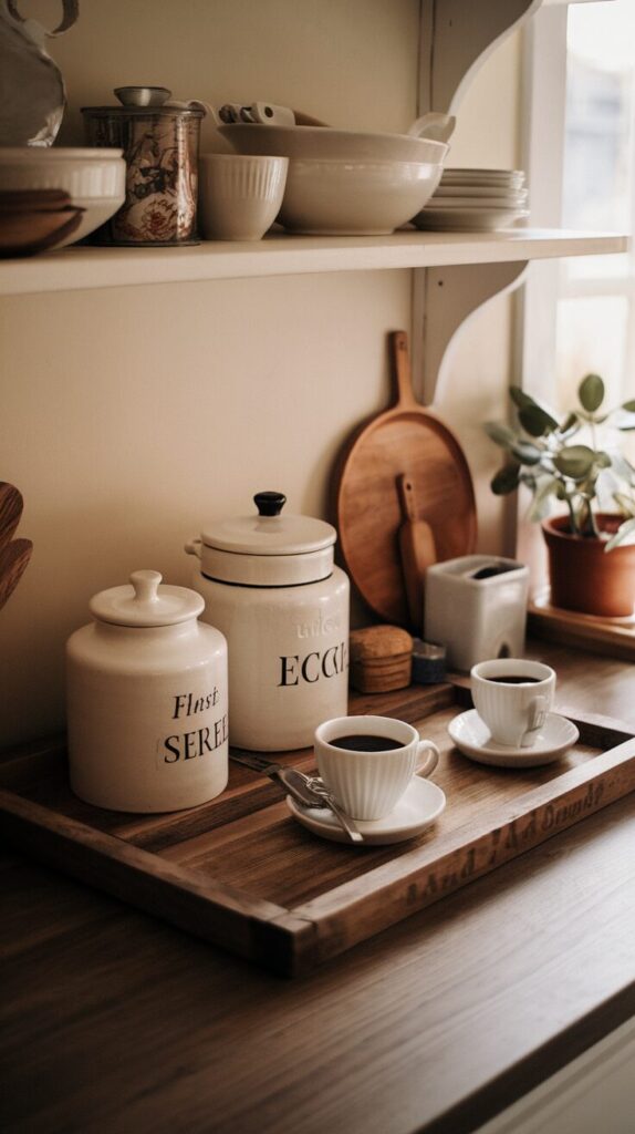7. Farmhouse Style Coffee Bar for Cozy Kitchens