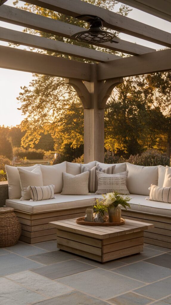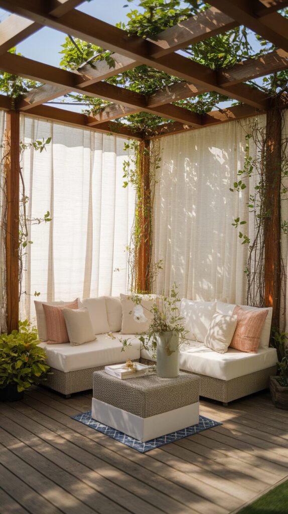 Corners feel unfinished without vertical definition. A pergola or privacy screen gives the patio structure and purpose. I love how this instantly upgrades the space without a full remodel.