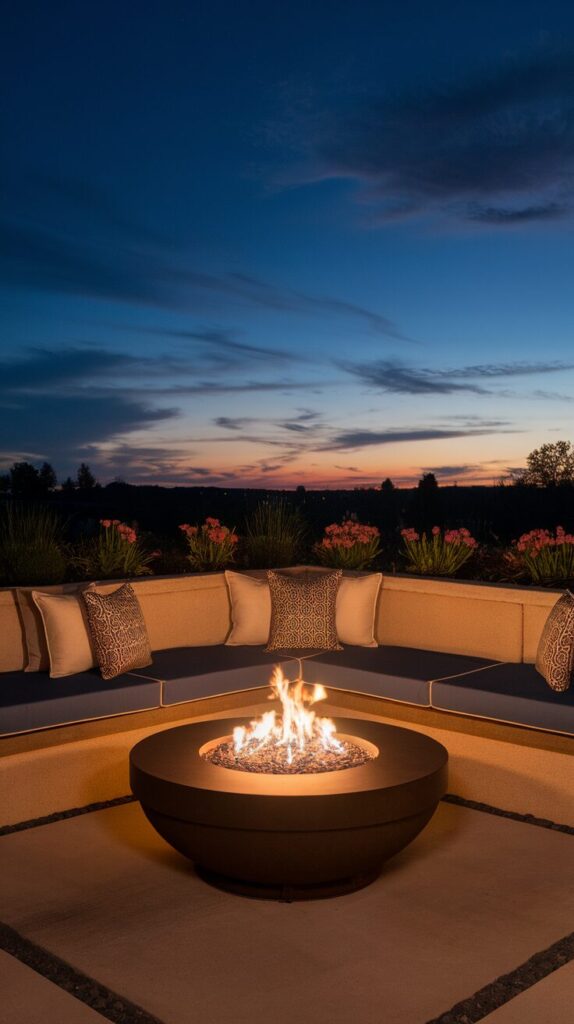 I love how this idea encourages conversation without feeling forced. People naturally gather around fire, especially when seating wraps comfortably around it.