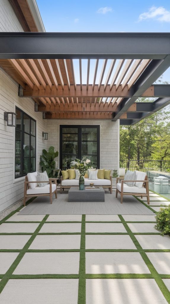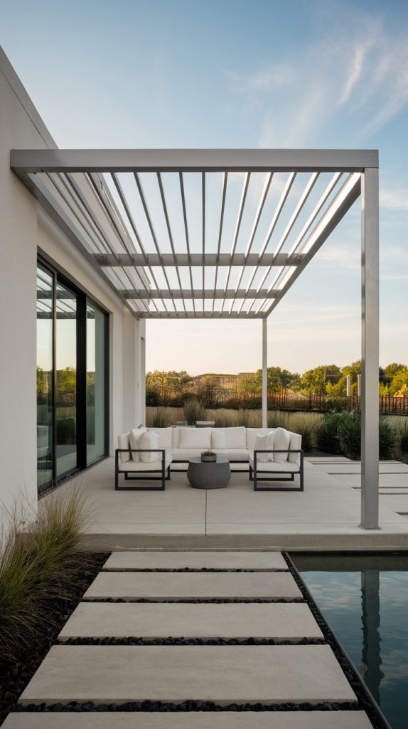 This style works especially well if you love versatility. You can host brunch, read outside, or enjoy evening drinks without feeling boxed in. IMO, adjustable pergolas make the patio feel like an extension of your living room instead of an afterthought.