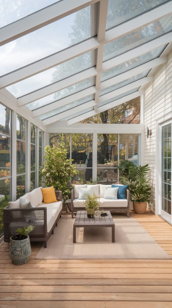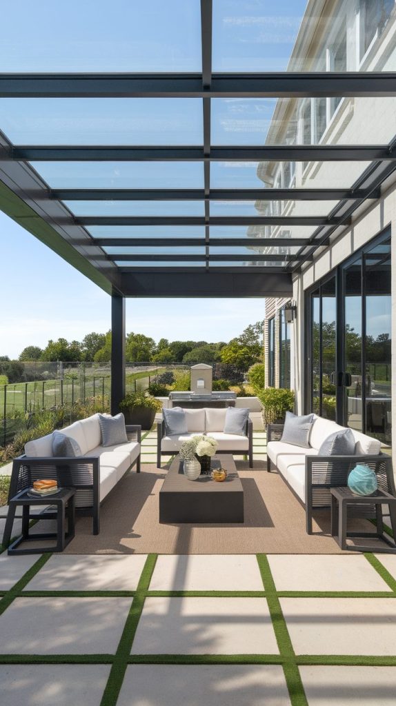 This idea suits people who love daylight but hate direct sun. You still see the sky, which keeps the mood light and open. If you enjoy plants on your patio, this option helps them thrive too.