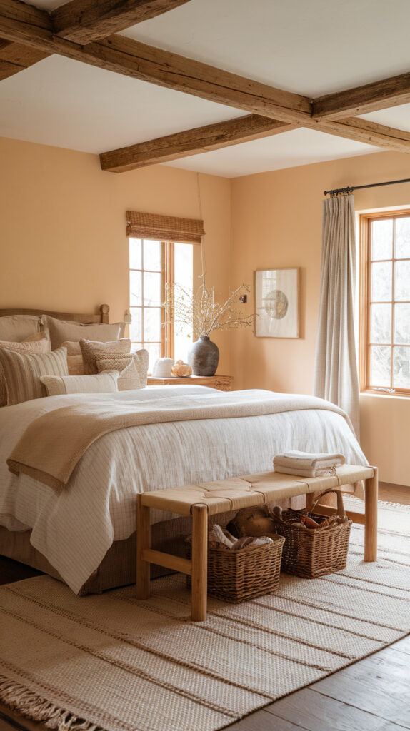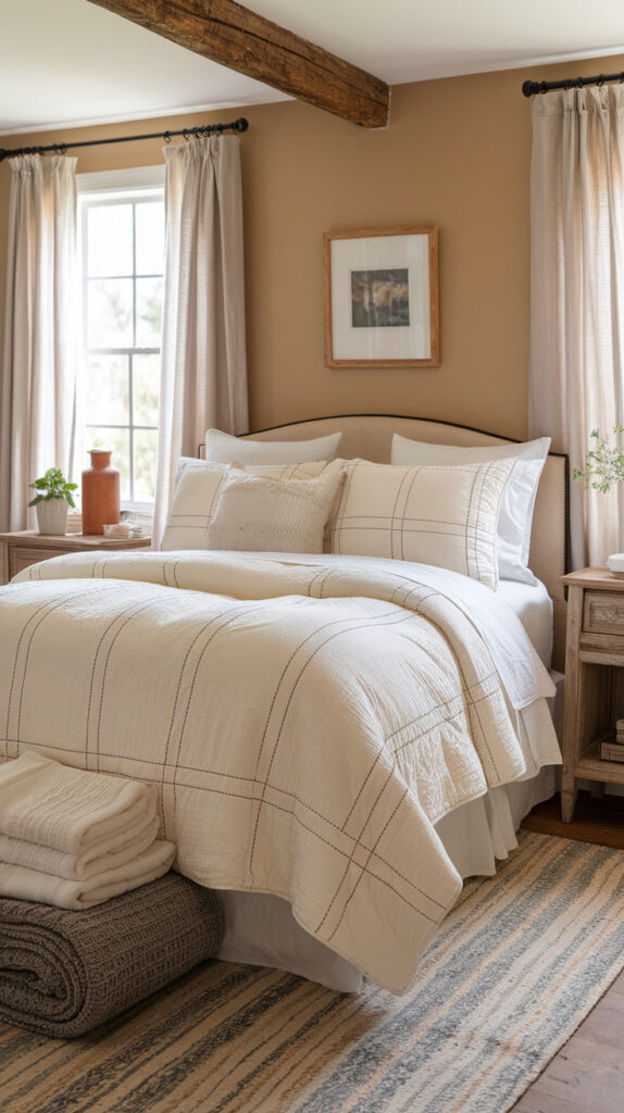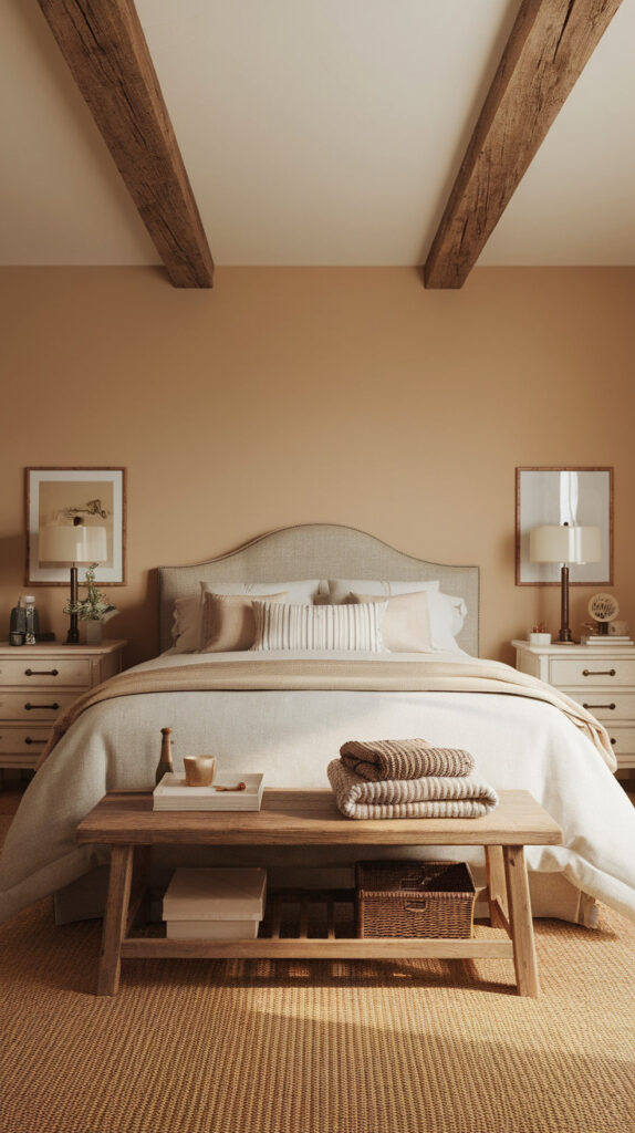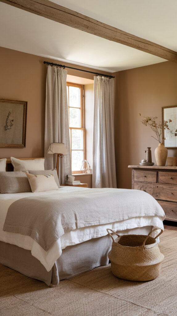 Bright white walls can feel clean, but they can also make a bedroom feel cold and unfinished. Country bedrooms need warmth, and the easiest way to get it is by choosing a soft neutral paint color with creamy undertones. It’s one of those changes that makes the whole room feel calmer immediately.