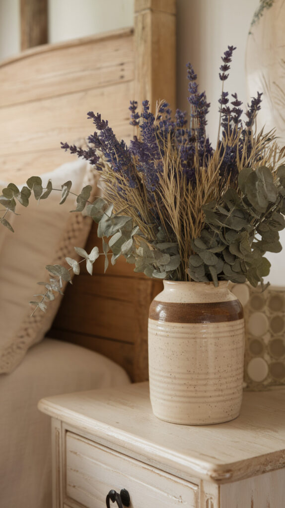 Buy dried flowers in bulk online or at craft stores and split them into smaller arrangements. One bundle can decorate multiple spots in your bedroom.