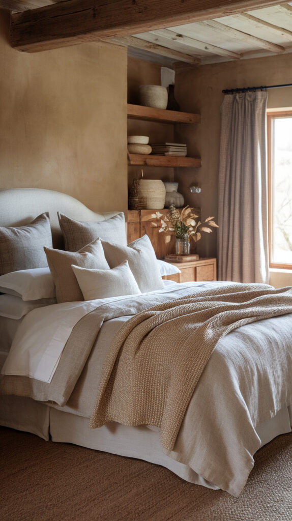 Warm neutrals create a soft background that makes everything else look more inviting. They help natural materials like wood, linen, and woven decor stand out.