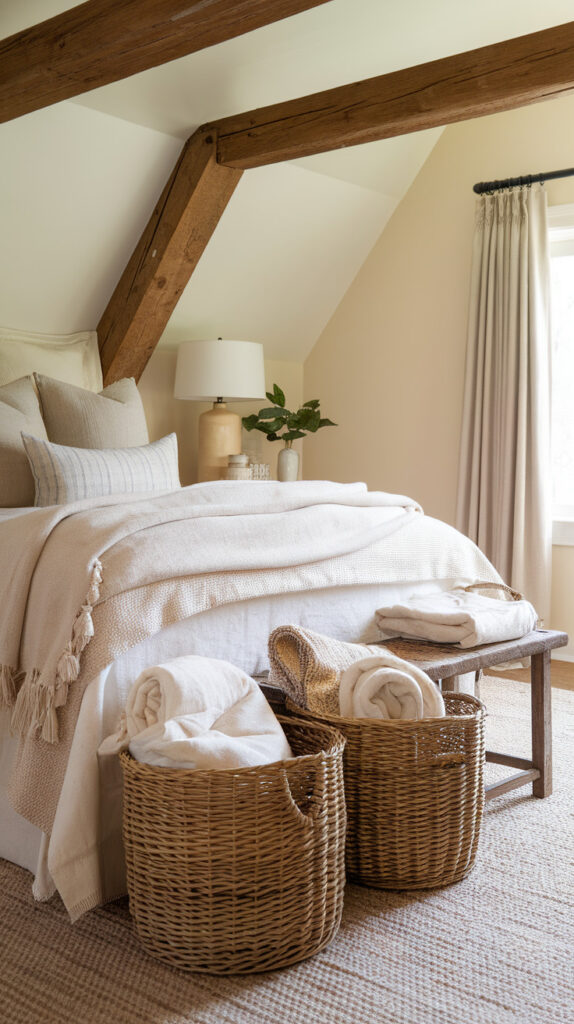 Also, don’t overcrowd the room with baskets everywhere, or it starts looking like a store display. Pick a few key spots and keep it balanced.