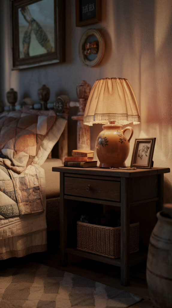 Country bedrooms don’t need fancy furniture, but they do need pieces that feel sturdy and useful. Rustic wood nightstands bring warmth, character, and that slightly vintage charm that makes the room feel grounded. Bonus points if they have drawers because clutter ruins cozy vibes fast.