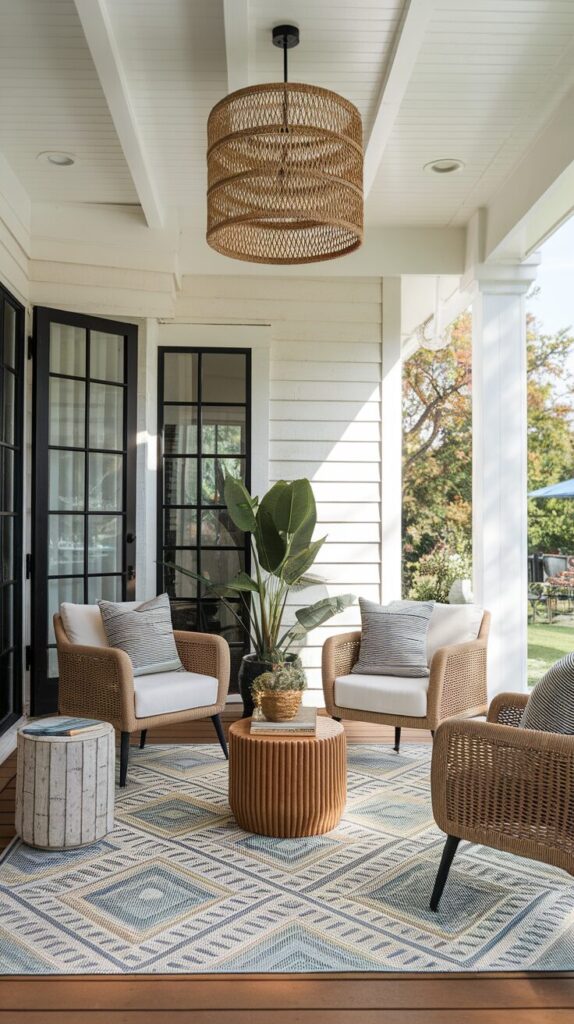 Textured rugs also add comfort and make the patio feel more like an indoor living room, which honestly feels amazing outside.