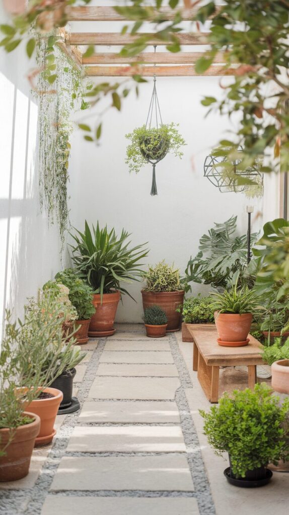 This approach keeps the patio open while adding greenery and comfort.
