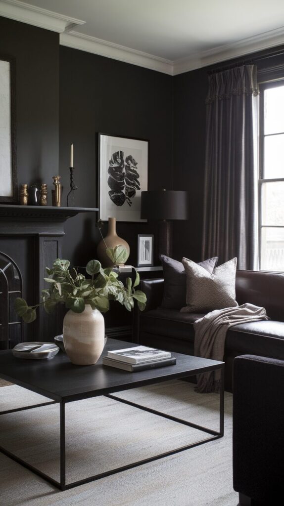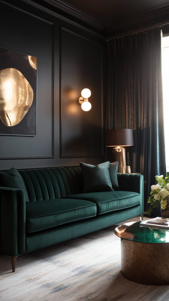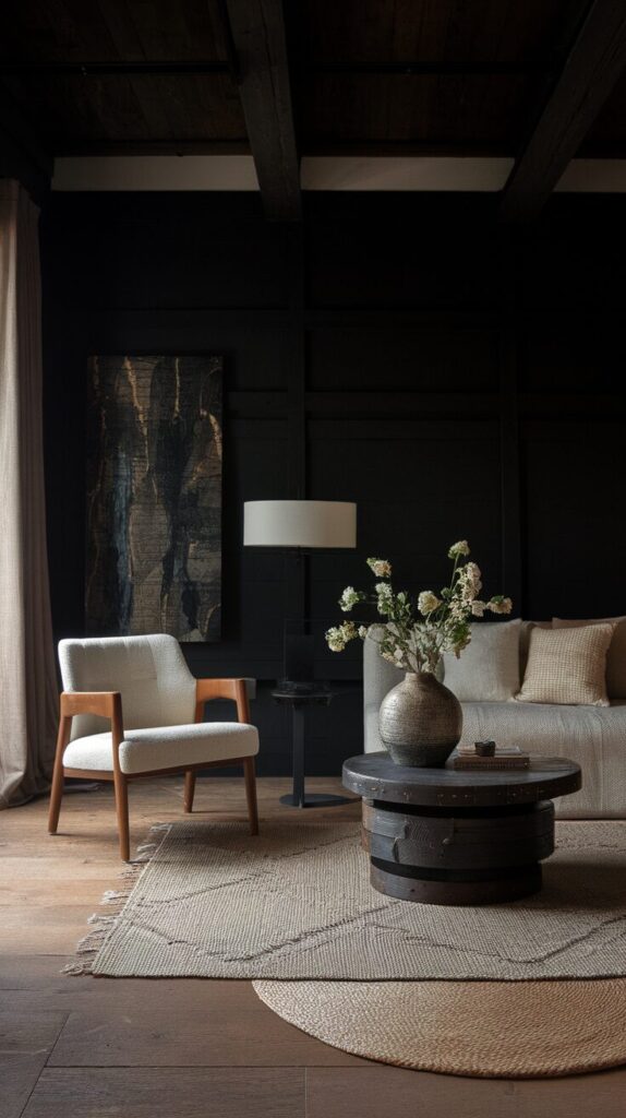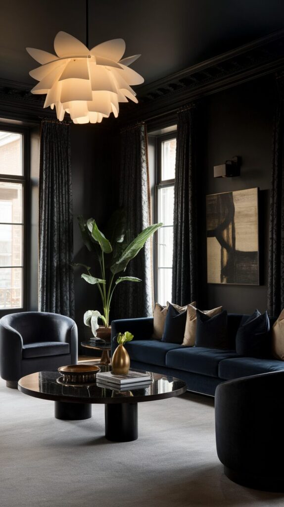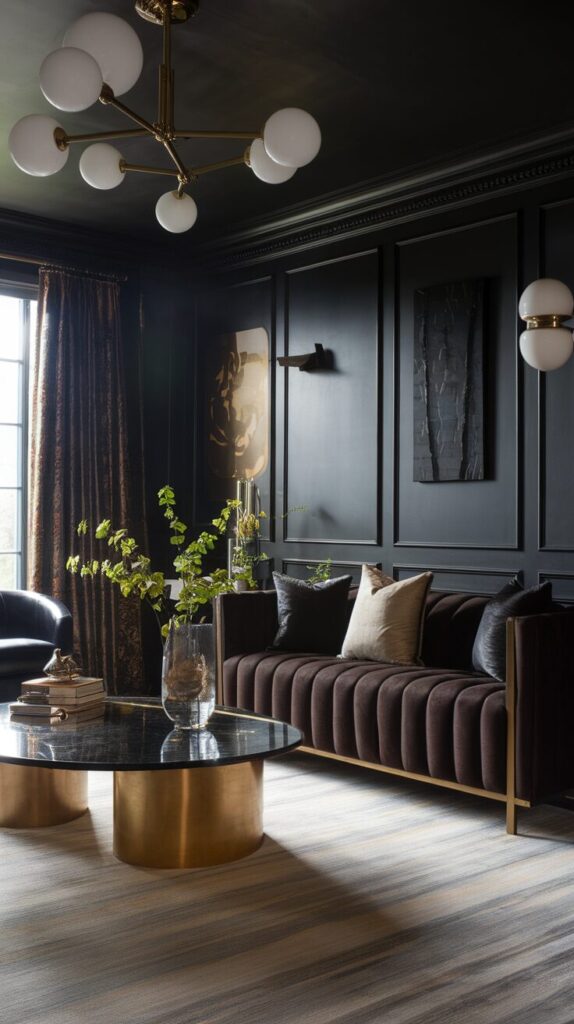 You don’t need dark walls, dark floors, and dark furniture all at once. Pick one dominant feature and build around it. That approach keeps the room bold but balanced.