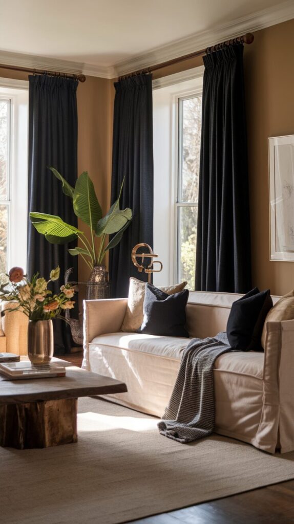 12. Dark Curtains That Frame the Room Beautifully
